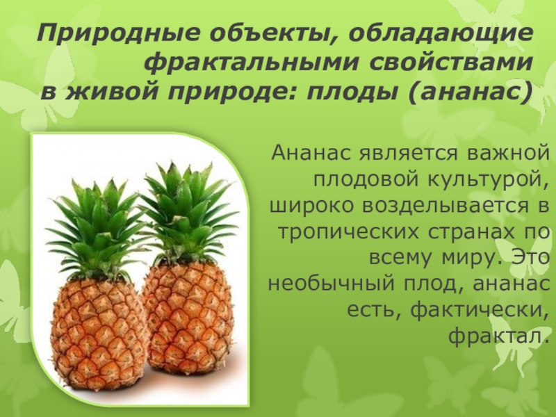 Ананас является важной плодовой культурой, широко возделывается в тропических странах по всему миру. Это необычный плод, ананас есть, фактически, фрактал.