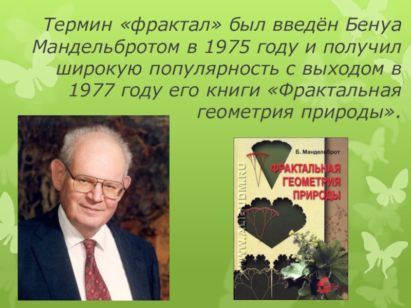 Слайд 3 Термин «фрактал» был введён Бенуа Мандельбротом в 1975 году и