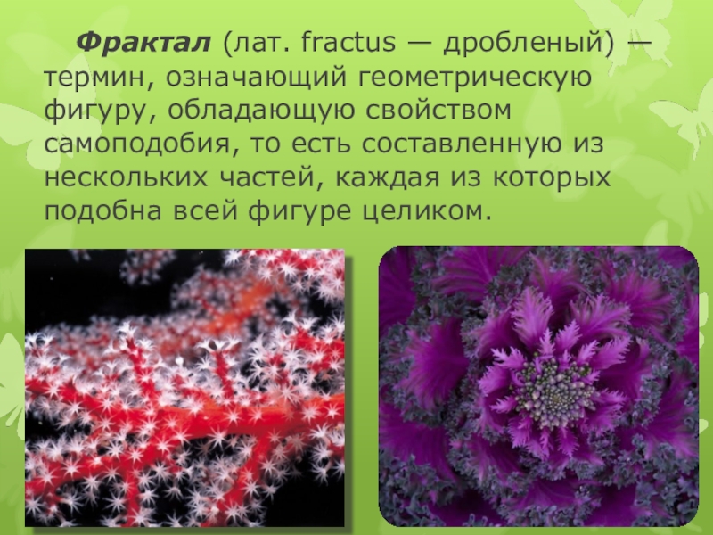 Слайд 2 Фрактал (лат. fractus — дробленый) — термин, означающий геометрическую