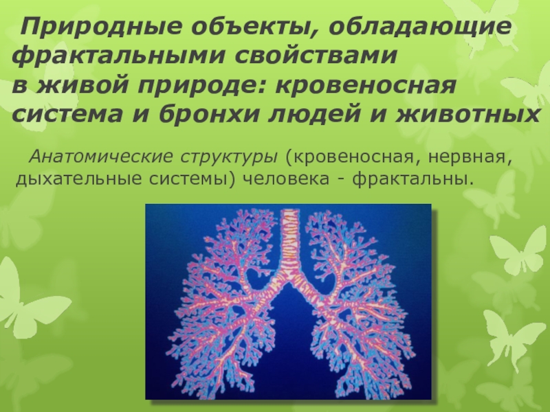 Анатомические структуры (кровеносная, нервная, дыхательные системы) человека - фрактальны.