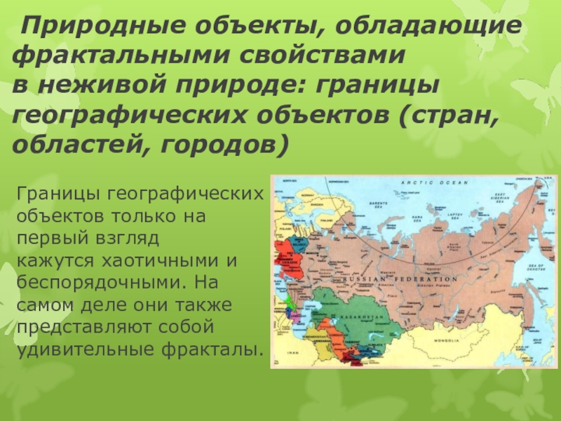 Слайд 18 Природные объекты, обладающие фрактальными свойствами