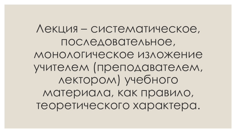 Слайд 2Лекция – систематическое, последовательное, монологическое изложение учителем (преподавателем, лектором) учебного материала,