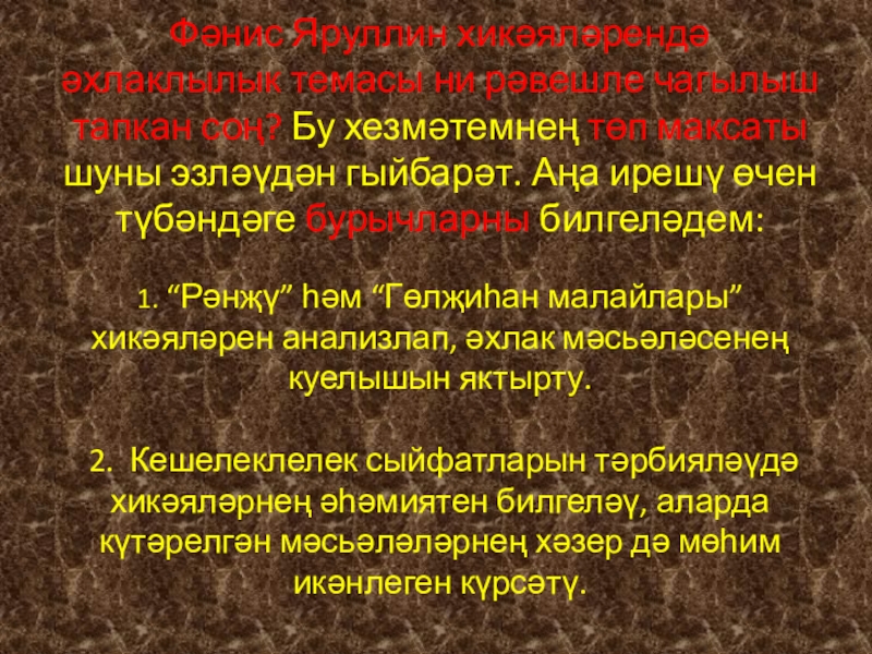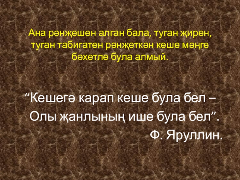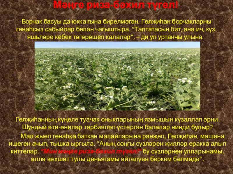 Гөлҗиһанның күңеле туачак оныкларының язмышын күзаллап әрни. Шундый әти-әниләр тәрбияләп үстергән балалар нинди булыр?