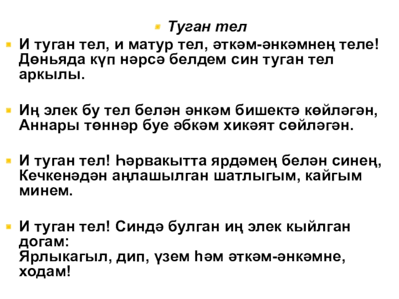 И туган тел, и матур тел, әткәм-әнкәмнең теле!