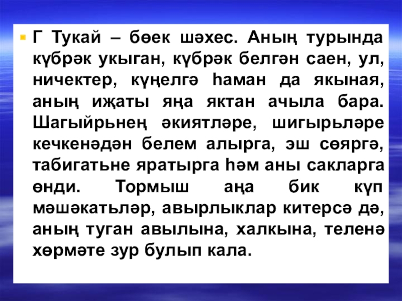 Слайд 19Г Тукай – бөек шәхес. Аның турында күбрәк укыган, күбрәк белгән