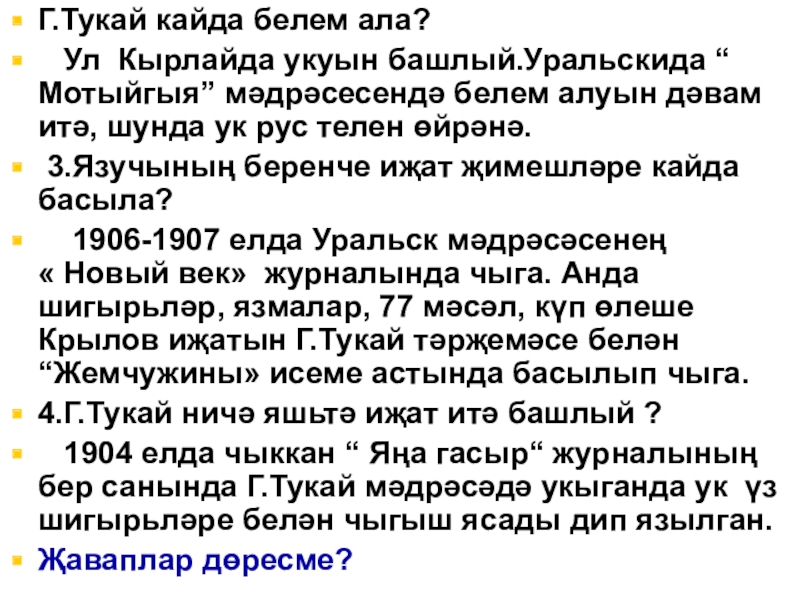 Слайд 20Г.Тукай күп тел белә. Шул дөресме?