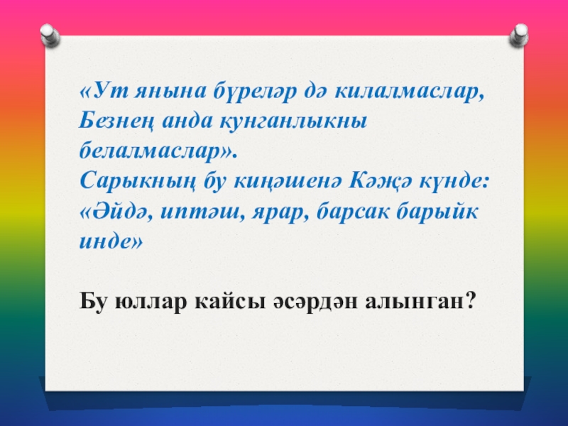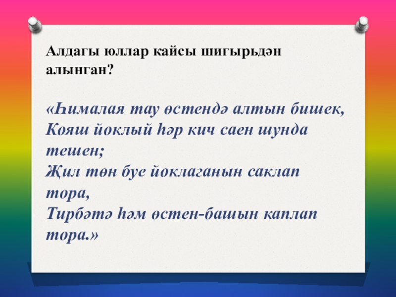 Слайд 16Алдагы юллар кайсы шигырьдән алынган?