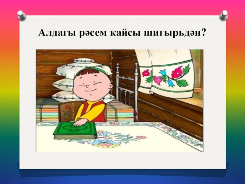 Слайд 14Алдагы рәсем кайсы шигырьдән?