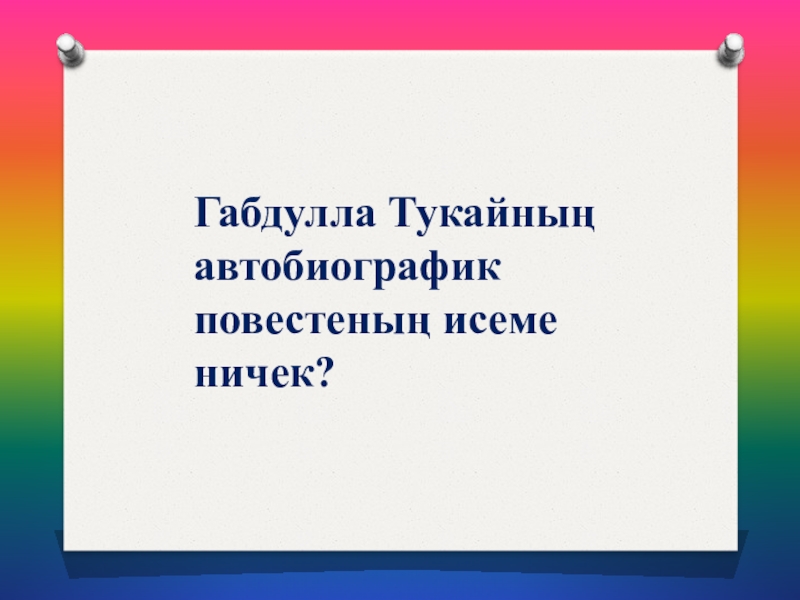 Слайд 13Габдулла Тукайның автобиографик повестеның исеме ничек?