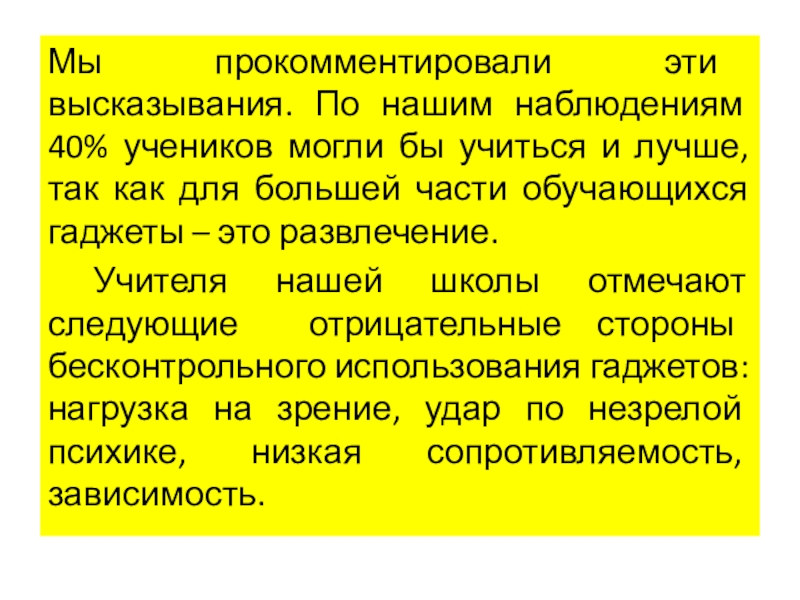 Слайд 16Мы прокомментировали эти высказывания. По нашим наблюдениям 40% учеников могли бы