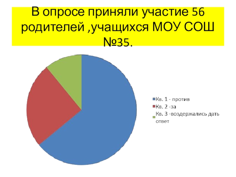 Слайд 9В опросе приняли участие 56 родителей ,учащихся МОУ СОШ №35.
