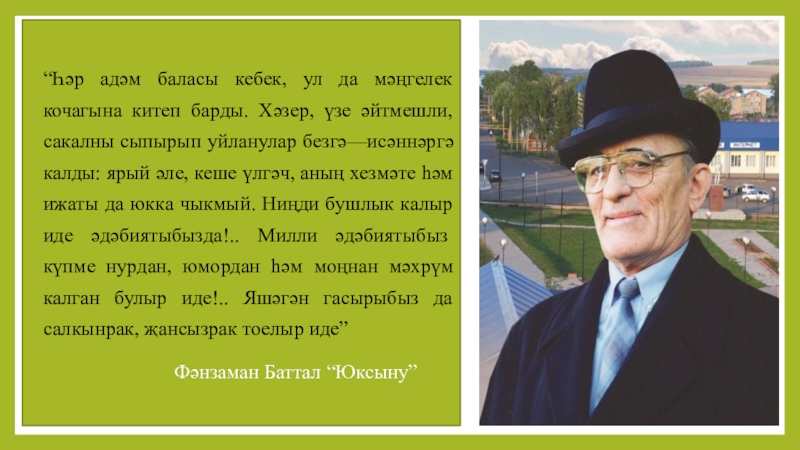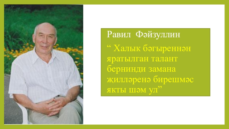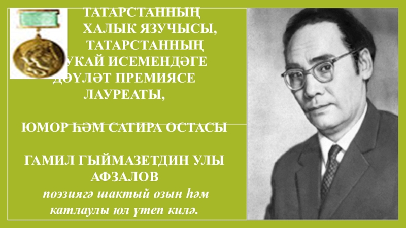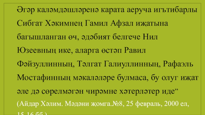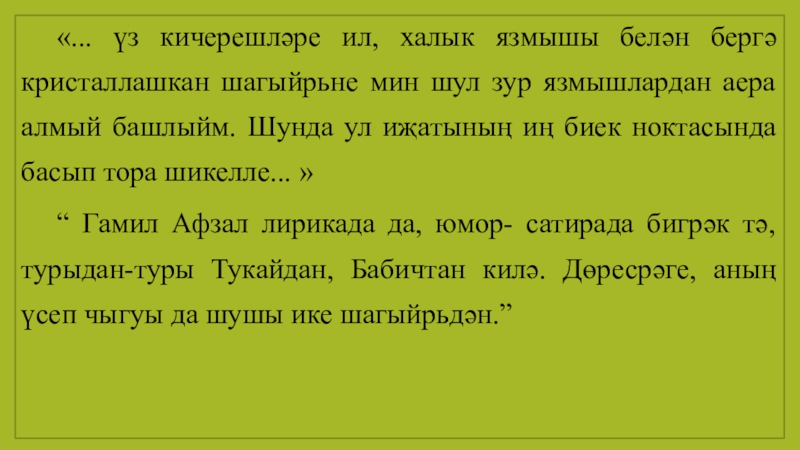 Слайд 12 «Гамил Афзал—татар шигъриятендә кабатланмас шәхес. Аның җәмгыяви лирикасы