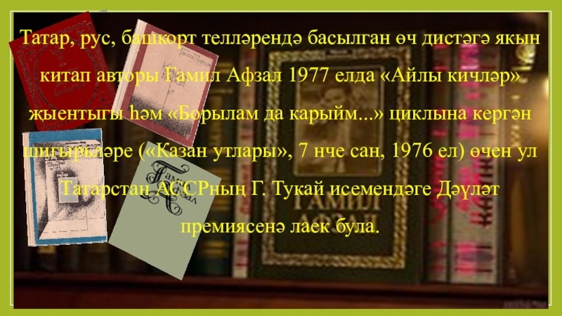 Слайд 3Татар, рус, башкорт телләрендә басылган өч дистәгә якын китап авторы Гамил
