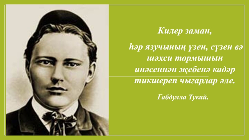Слайд 7«... үз кичерешләре ил, халык язмышы белән бергә кристаллашкан шагыйрьне мин