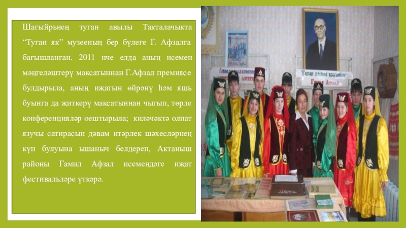 Слайд 16Шагыйрьнең туган авылы Такталачыкта “Туган як” музееның