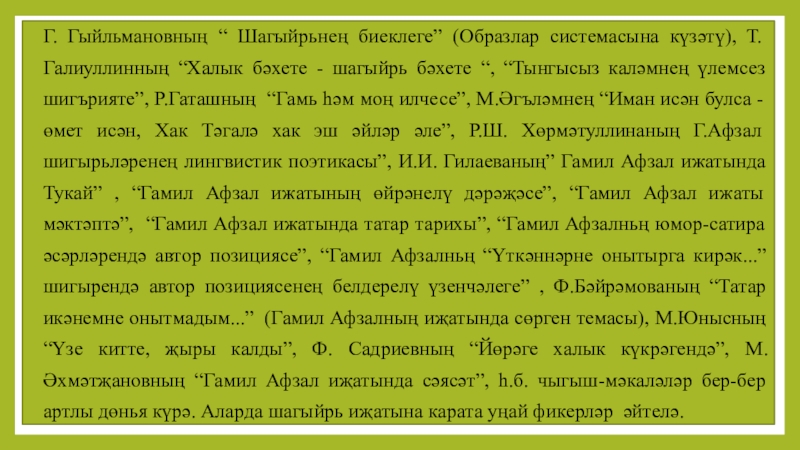 Слайд 10“Гамил Афзал тудырган шигърият – шулкадәр камил, татар җанына шулкадәр якын,