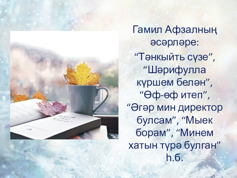 “Тәнкыйть сүзе”, “Шәрифулла күршем белән”, “Өф-өф итеп”, “Әгәр мин