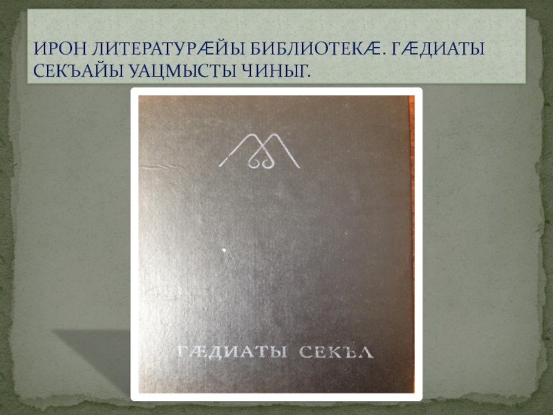 Слайд 9ИРОН ЛИТЕРАТУРÆЙЫ БИБЛИОТЕКÆ. ГÆДИАТЫ СЕКЪАЙЫ УАЦМЫСТЫ ЧИНЫГ.