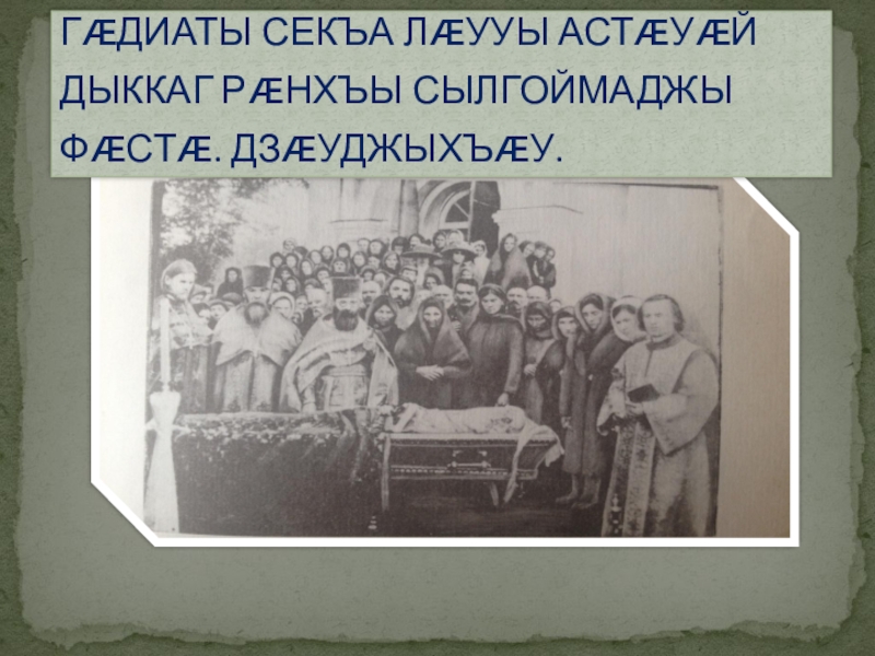 Слайд 3 ГᴁДИАТЫ СЕКЪА ЛᴁУУЫ АСТᴁУᴁЙ ДЫККАГ РᴁНХЪЫ СЫЛГОЙМАДЖЫ ФᴁСТᴁ. ДЗᴁУДЖЫХЪᴁУ.