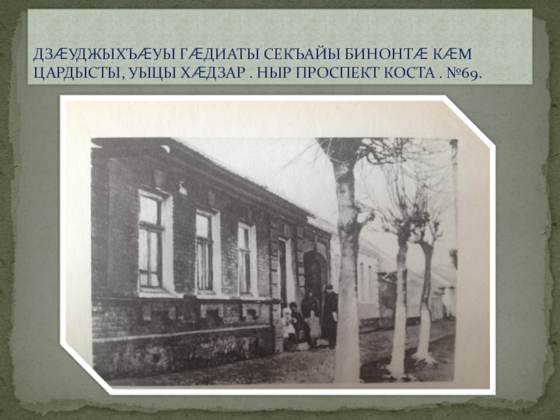 ДЗÆУДЖЫХЪÆУЫ ГÆДИАТЫ СЕКЪАЙЫ БИНОНТÆ КÆМ ЦАРДЫСТЫ, УЫЦЫ ХÆДЗАР . НЫР ПРОСПЕКТ КОСТА . №69.