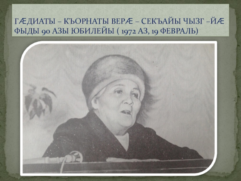 ГÆДИАТЫ – КЪОРНАТЫ ВЕРÆ – СЕКЪАЙЫ ЧЫЗГ –ЙÆ ФЫДЫ 90 АЗЫ ЮБИЛЕЙЫ ( 1972 АЗ, 19 ФЕВРАЛЬ)