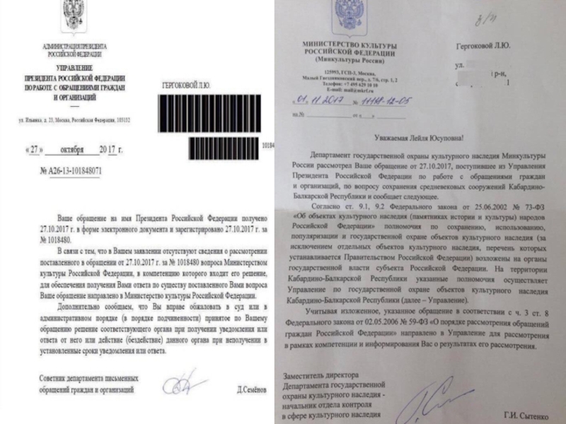 не безразлично пытаются предпринимать какие-либо меры. Например, моя родственница Гергокова Лейля Юсуповна обратилась к Президенту РФ, написав ему письмо о сохранении исторического наследия . Ответ не заставил себя ждать.