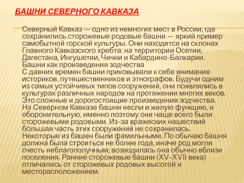 Слайд 4Башни Северного Кавказа