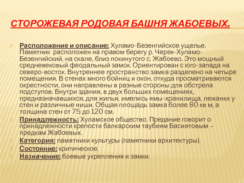 Слайд 16Сторожевая родовая башня Жабоевых.