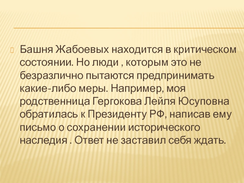 Слайд 18Башня Жабоевых находится в критическом состоянии. Но люди , которым это