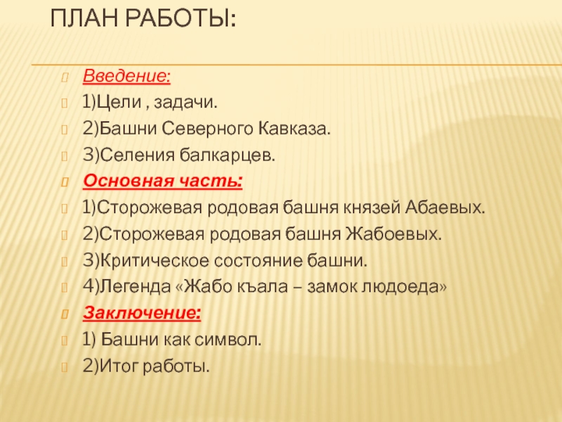 Слайд 2План работы: