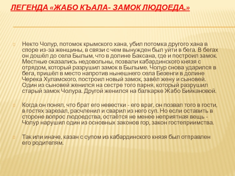 Слайд 22Легенда «Жабо къала- замок людоеда.»
