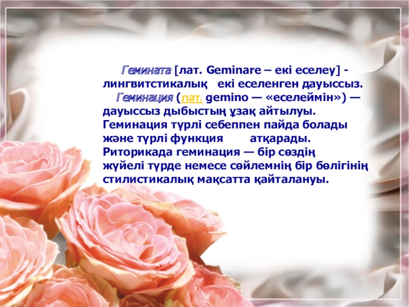 Геминация (лат. gemino — «еселеймін») — дауыссыз дыбыстың ұзақ айтылуы. Геминация түрлі себеппен пайда болады және түрлі функция атқарады. Риторикада геминация — бір сөздің жүйелі түрде немесе сөйлемнің бір бөлігінің стилистикалық мақсатта қайталануы.
