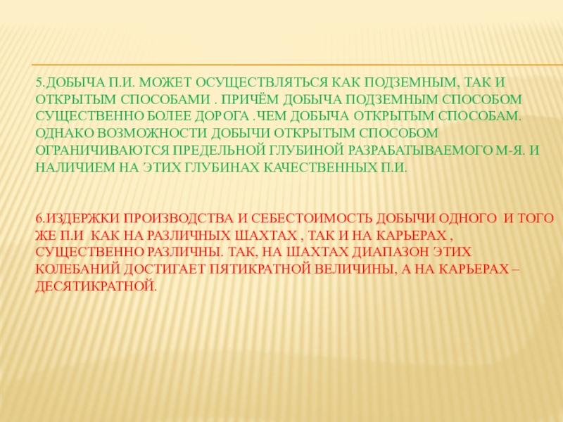 Слайд 165.Добыча п.и. может осуществляться как подземным, так и открытым способами .