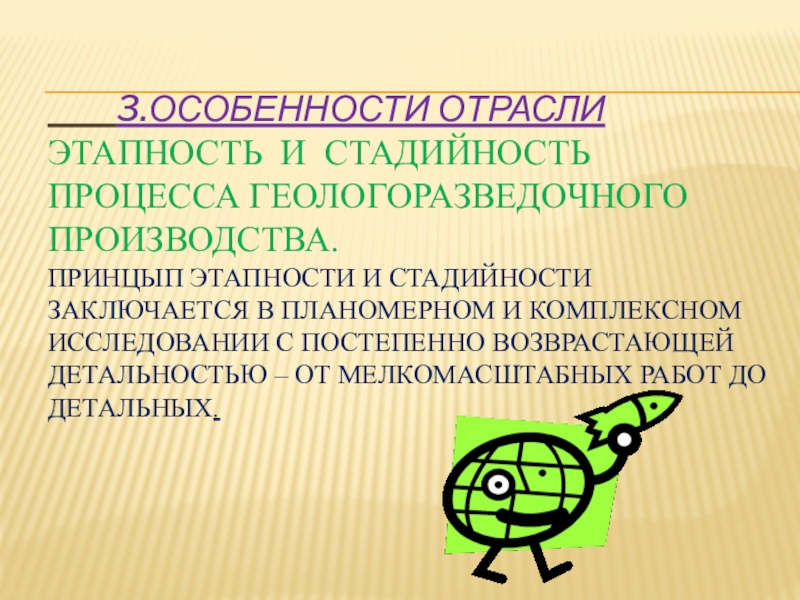 Принцып этапности и стадийности заключается в планомерном и комплексном исследовании с постепенно возврастающей детальностью – от мелкомасштабных работ до детальных.