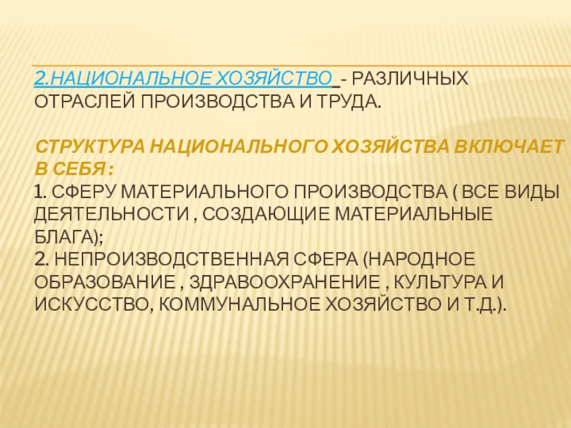 Слайд 62.Национальное хозяйство - различных отраслей производства и труда.