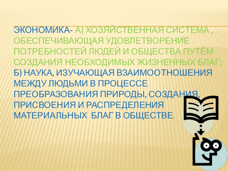 Слайд 4Экономика- а) хозяйственная система , обеспечивающая удовлетворение потребностей людей и общества