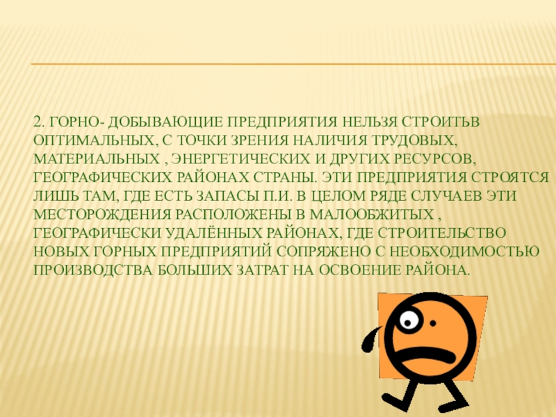 Слайд 142. горно- добывающие предприятия нельзя строитьв оптимальных, с точки зрения наличия
