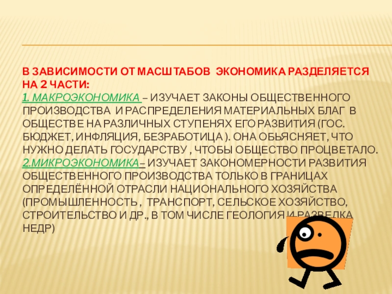 Слайд 5В зависимости от масштабов экономика разделяется на 2 части: