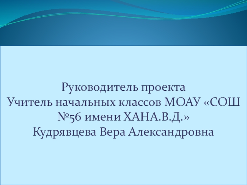 Руководитель проектаУчитель начальных классов МОАУ «СОШ №56 имени ХАНА.В.Д.»Кудрявцева Вера Александровна