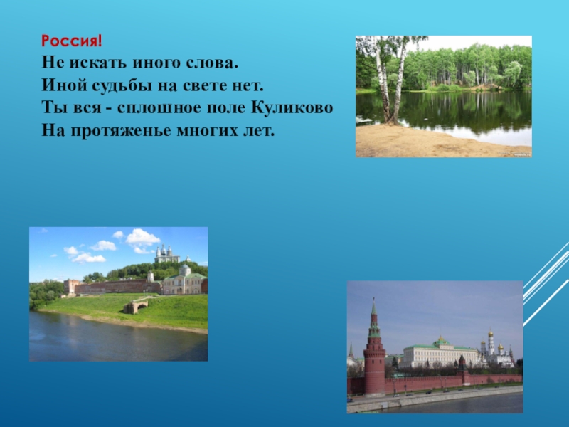 Слайд 26 Россия! Не искать иного слова. Иной судьбы на свете нет. Ты вся