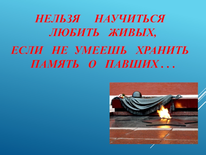 Слайд 28НЕЛЬЗЯ НАУЧИТЬСЯ ЛЮБИТЬ ЖИВЫХ,