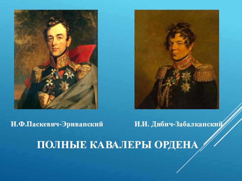 Полные кавалеры ОрденаИ.Ф.Паскевич-Эриванский         И.И. Дибич-Забалканский