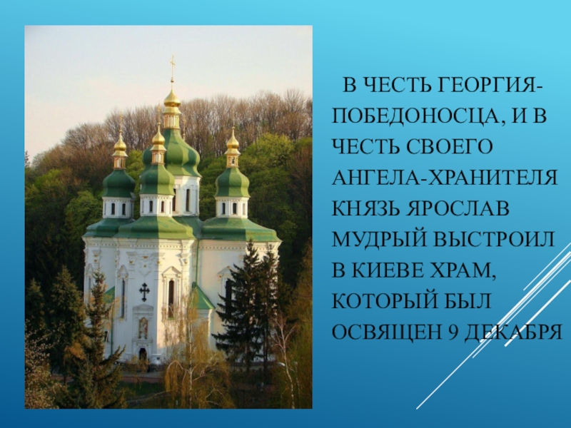 в честь Георгия-Победоносца, и в честь своего ангела-хранителя князь Ярослав Мудрый выстроил в Киеве храм, который был