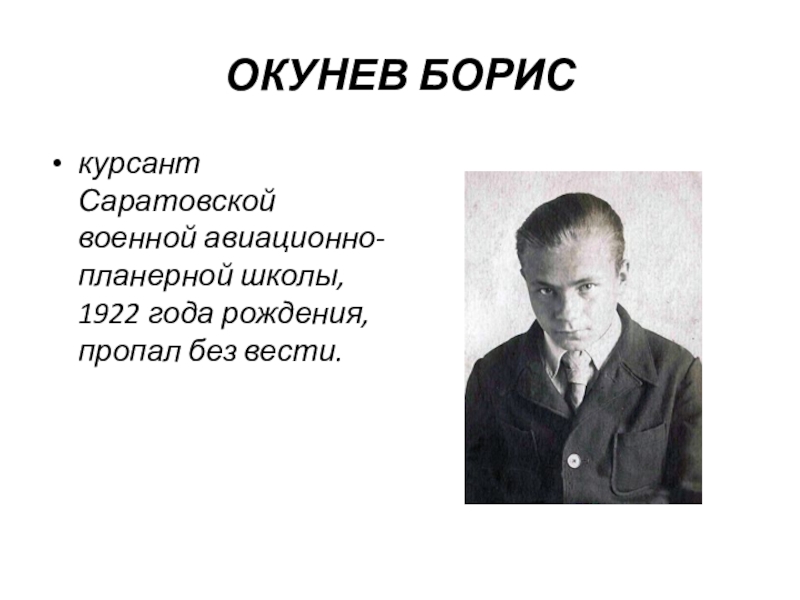 курсант Саратовской военной авиационно-планерной школы, 1922 года рождения, пропал без
