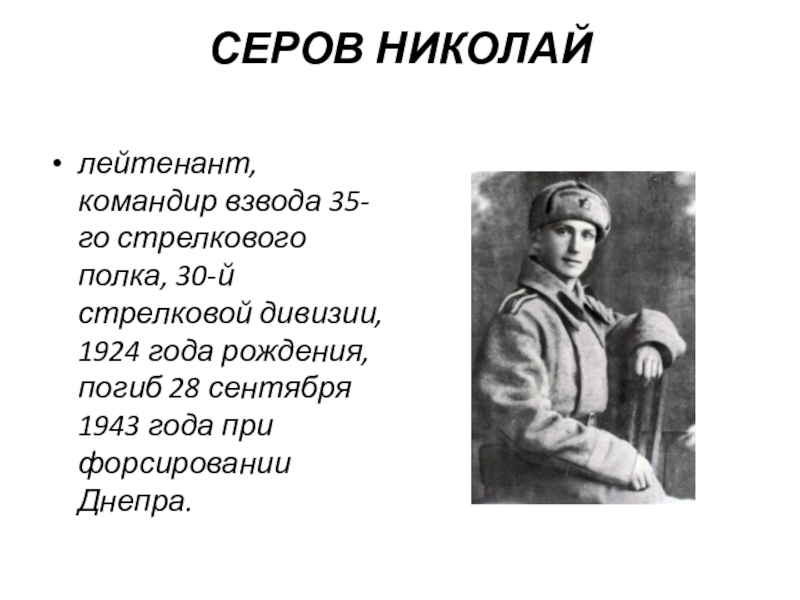 года рождения, погиб 28 сентября 1943 года при форсировании Днепра.