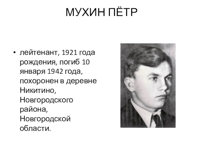 лейтенант, 1921 года рождения, погиб 10 января 1942 года, похоронен