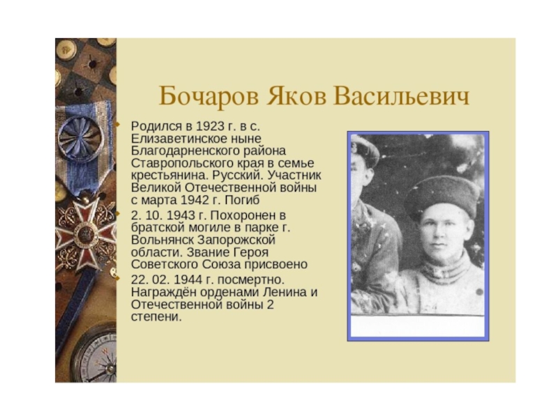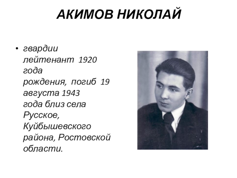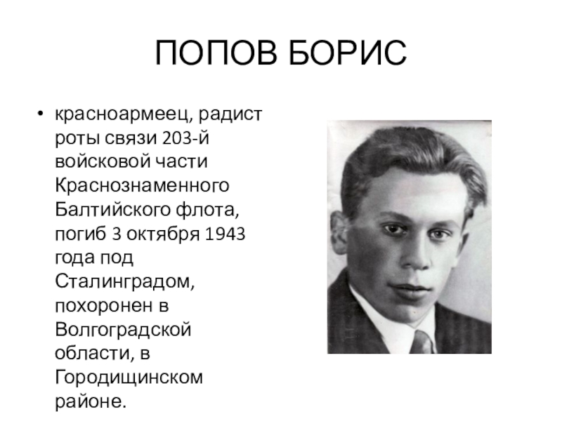 1921 года рождения, погиб в 1942 году под Сталинградом, вблизи