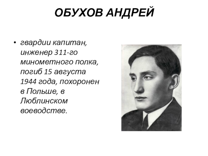 гвардии капитан, инженер 311-го минометного полка, погиб 15 августа 1944