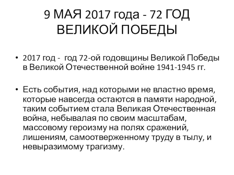 год 72-ой годовщины Великой Победы в Великой Отечественной войне 1941-1945 гг.