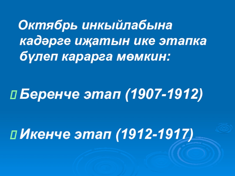 Слайд 12 Октябрь инкыйлабына кадәрге иҗатын ике этапка бүлеп карарга мөмкин: